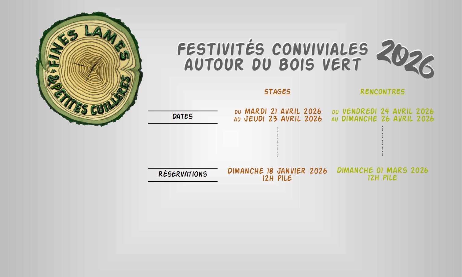 Nous nous retrouverons du mardi 21 avril 2026 au dimanche 26 avril 2026 pour notre traditionnelle rencontre printanière de stages et d’ateliers.